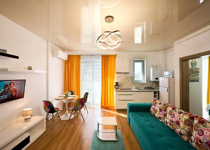 海滨的Aparthotel Seavibes Promenada 那沃达利距离Kudos Beach海滩有15分钟车程,为想要做饭的客人提供大厨房. 它距离Fratelli Beach & Club大约有4.4公里,靠近Plaja Navodari.